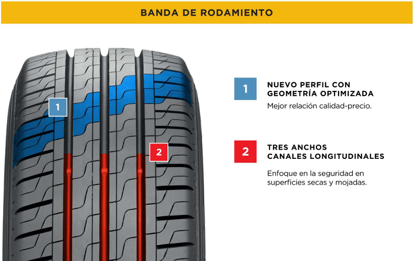 Desgaste uniforme y buena vida útil: diseñada para ofrecer durabilidad y rendimiento por kilómetro.